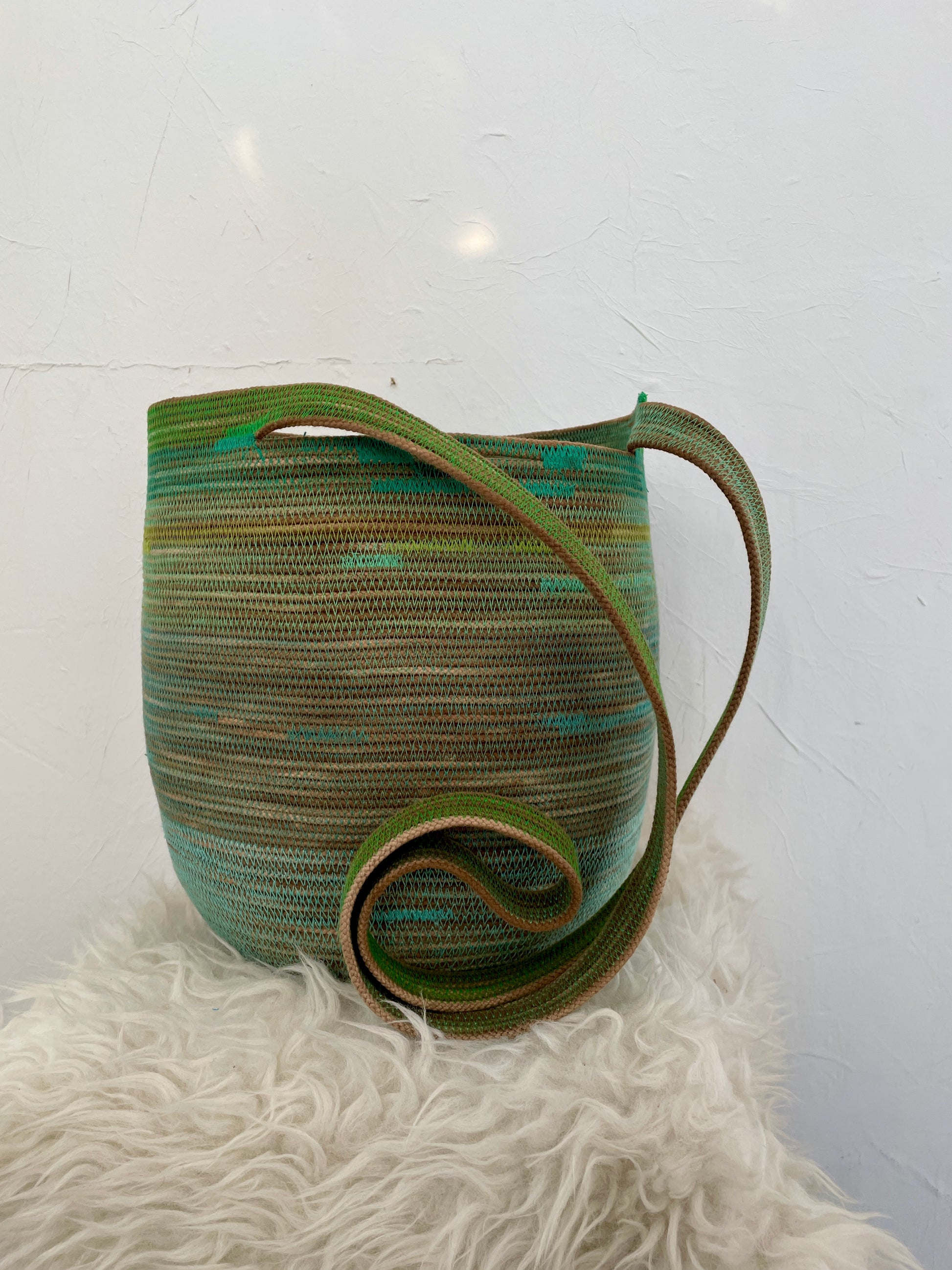 This design can be worn across the body, over the shoulder, carried as a regular basket or on your back like a backpack. Each basket is one-of-a-kind and will keep its shape with wear.