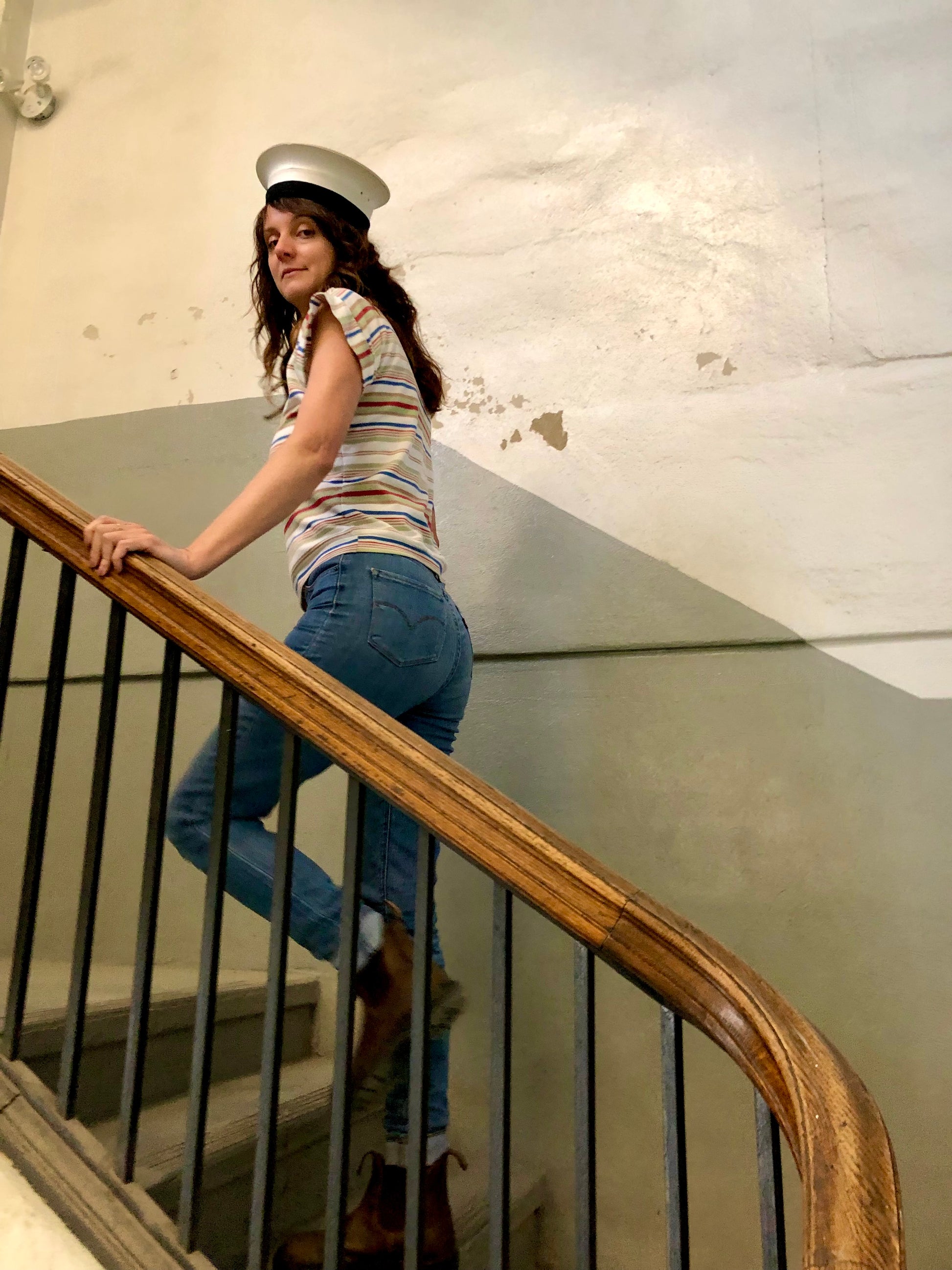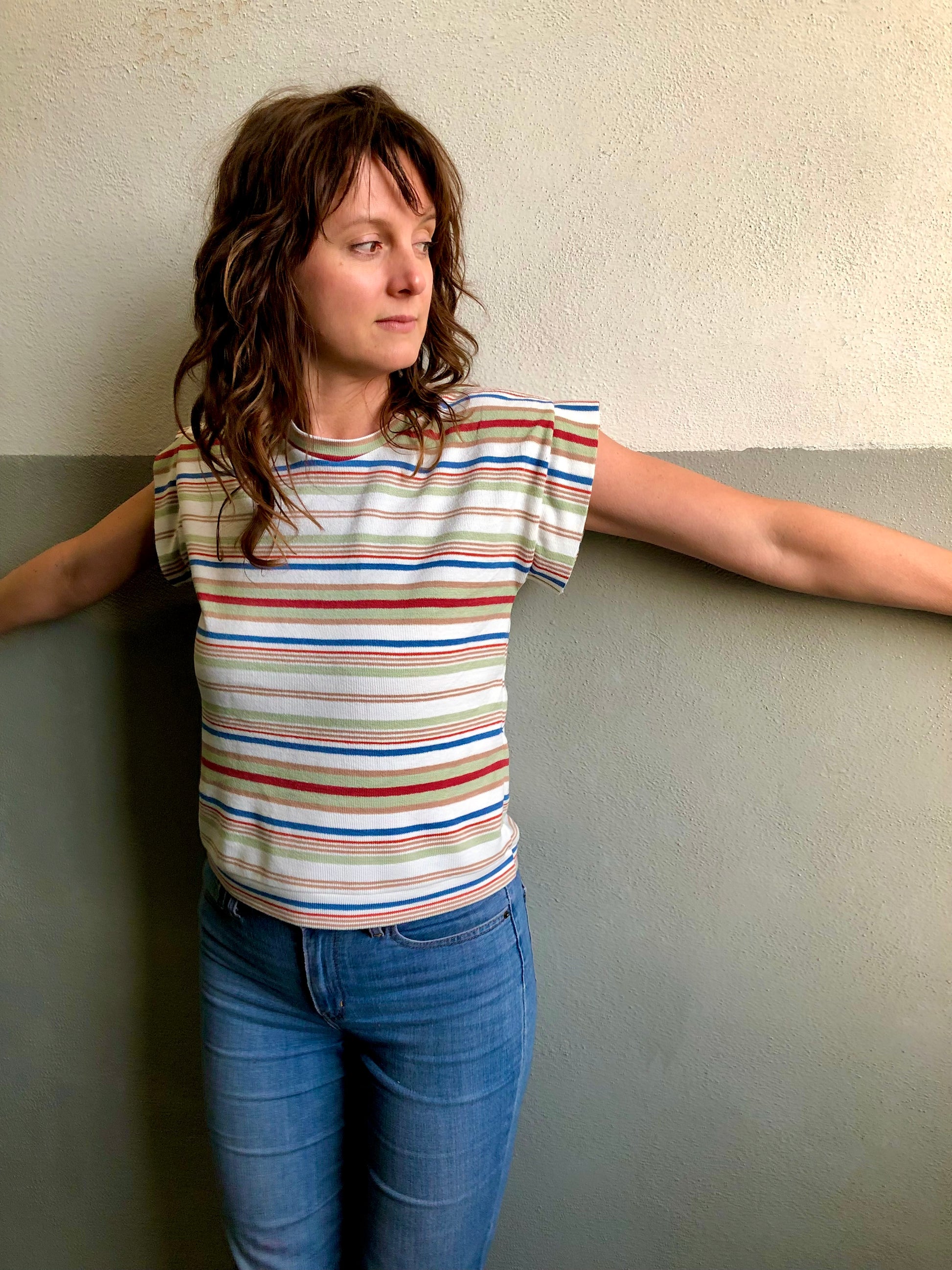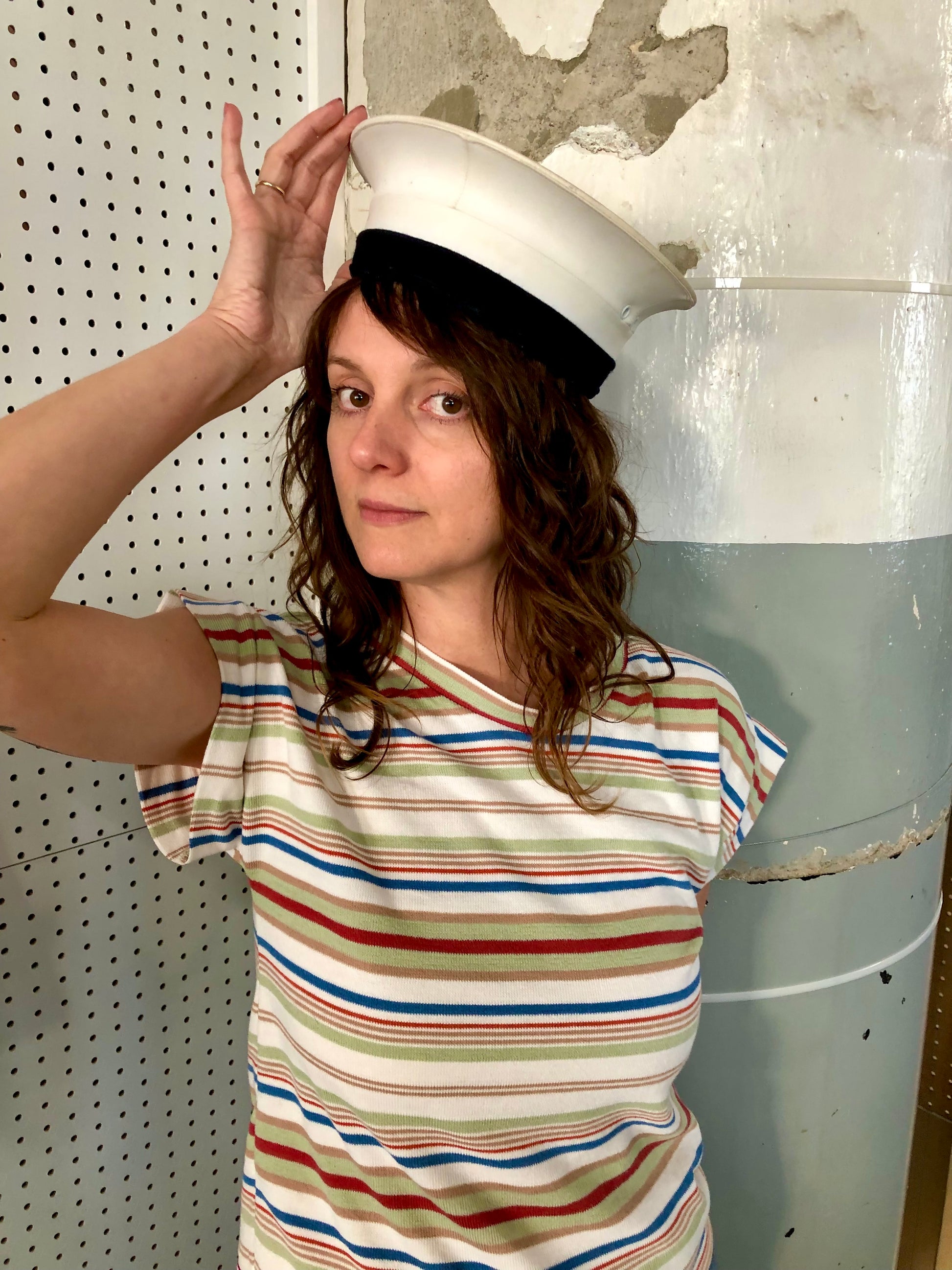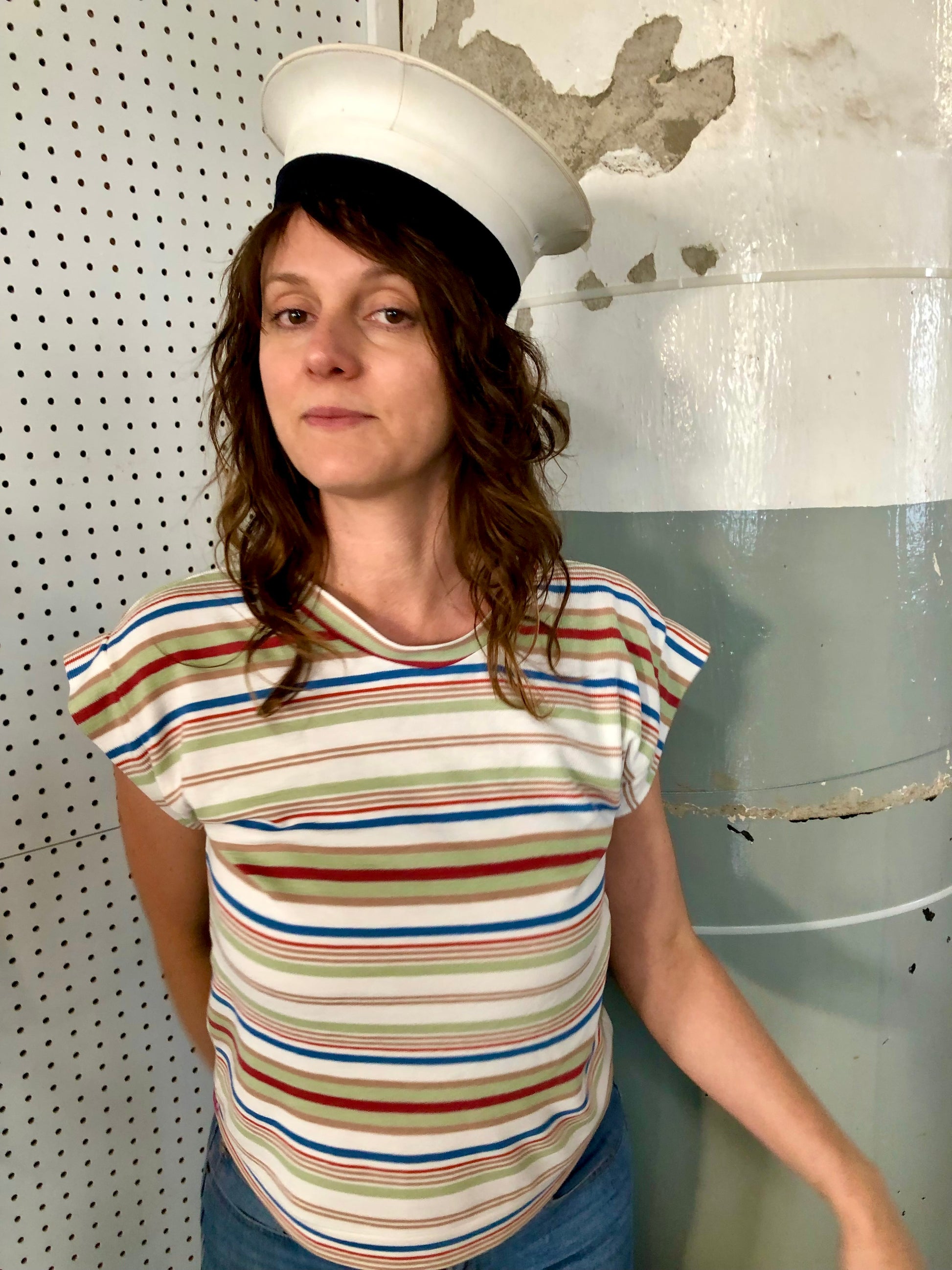 This version of the Bonnie Bosun is an a soft, textured striped cotton.