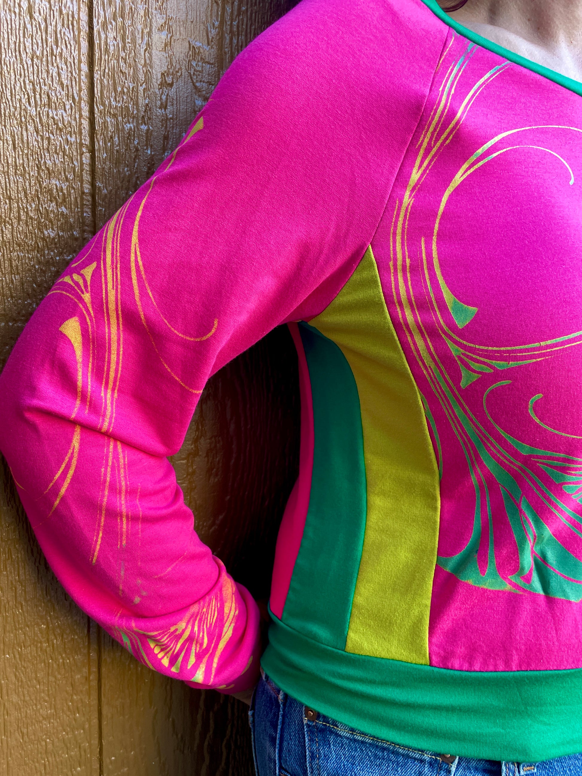This slightly cropped top sits at waist level and is made from a luxuriously soft bamboo/cotton French Terry.