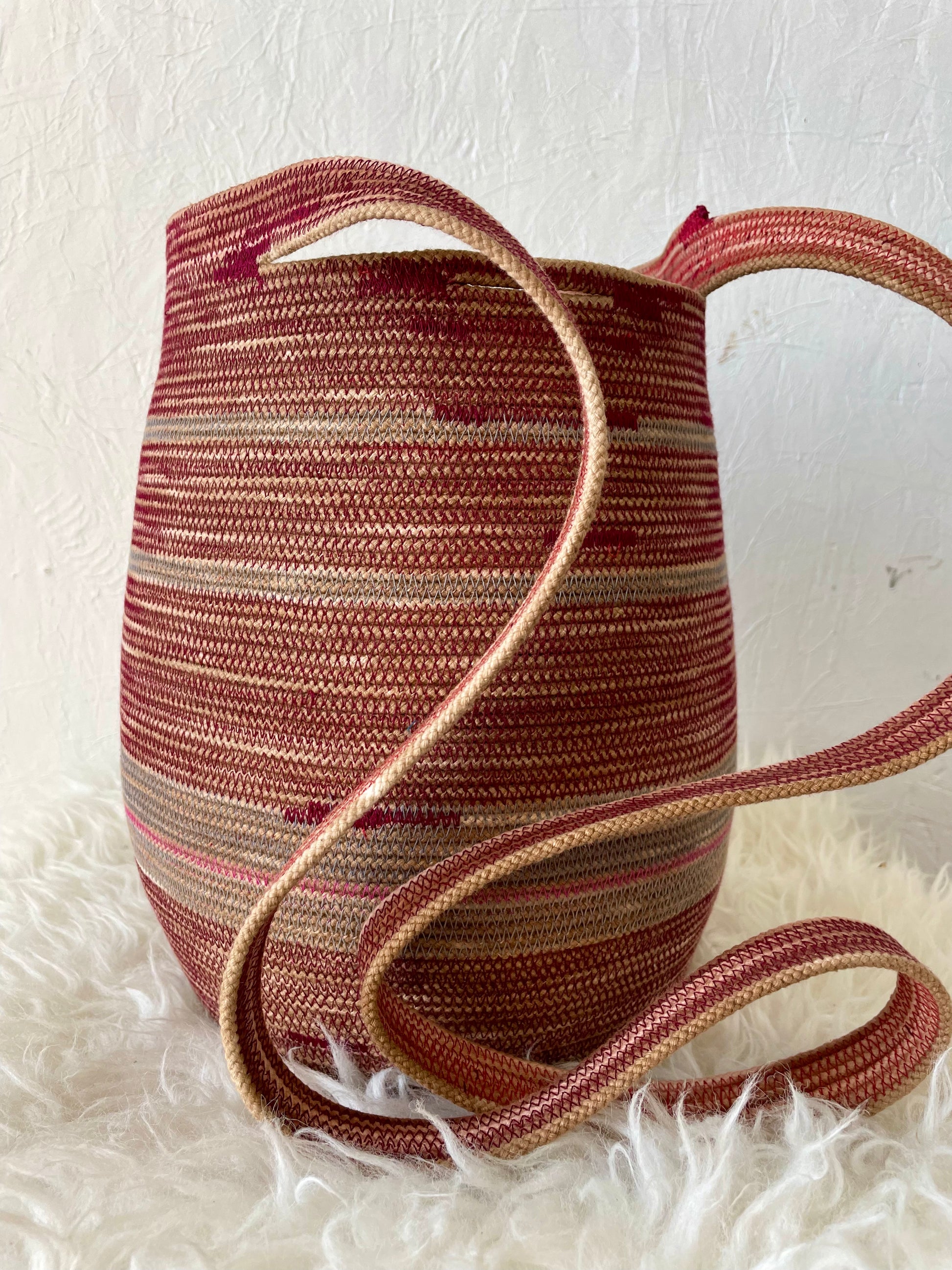 Depending on how you tie down the main strap you can wear it across the body, over the shoulder, carried as a regular basket or on your back like a backpack. Each basket is one-of-a-kind and will keep its shape with wear.