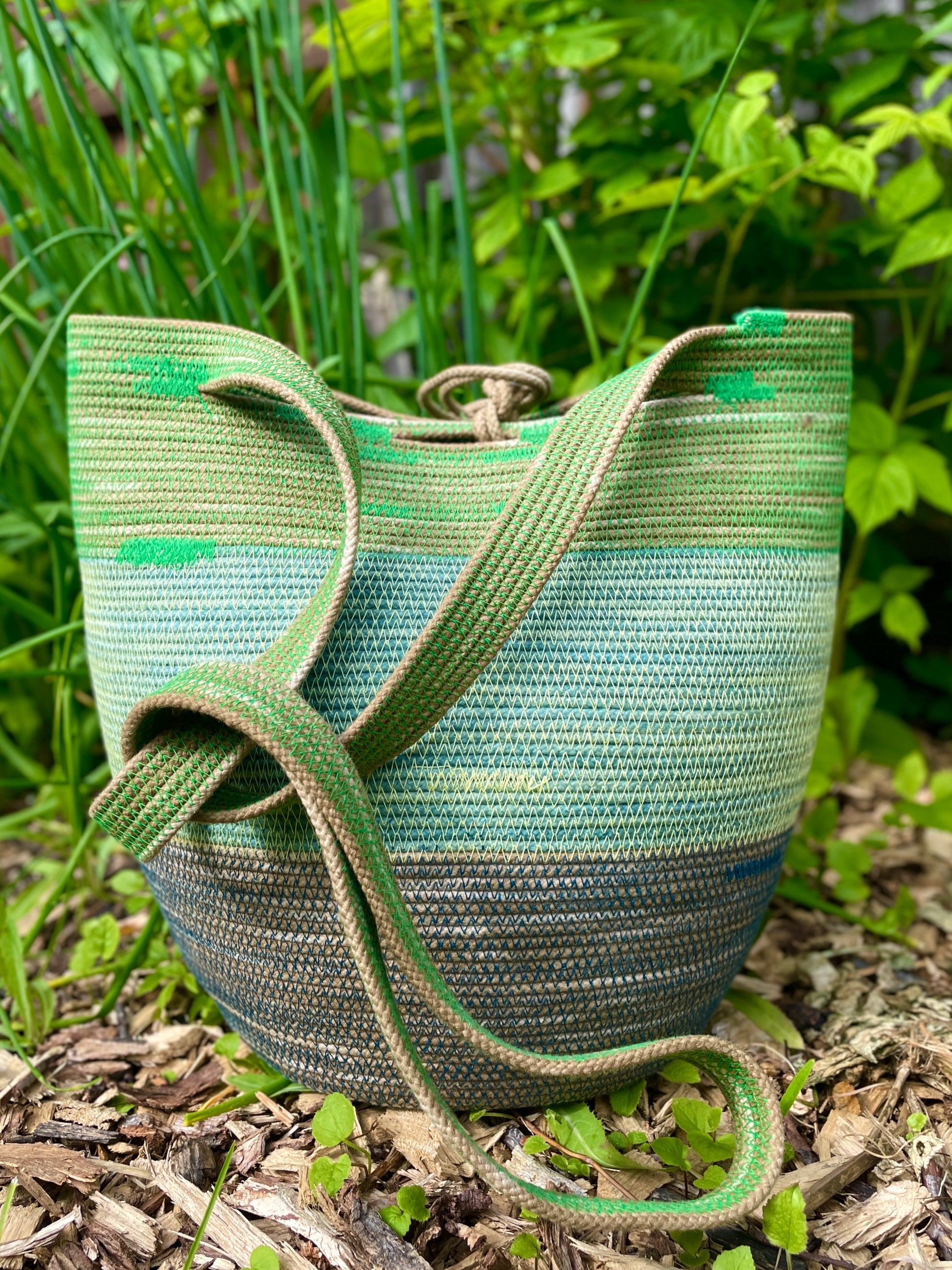 Our Foraging Basket is our most versatile design. This ONE-OF-A-KIND basket features my naturally dyed rope/cord, featuring a centre dyed with indigo.
