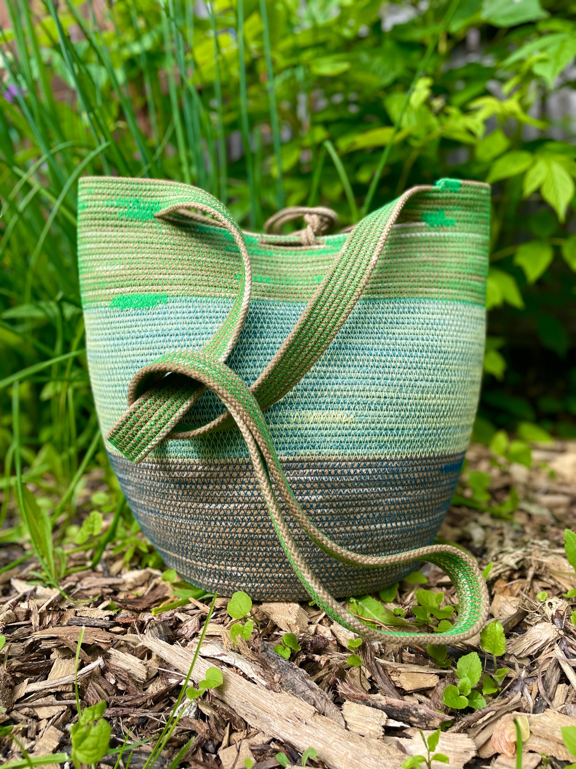 This design can be worn across the body, over the shoulder, carried as a regular basket or on your back like a backpack. Each basket is one-of-a-kind and will keep its shape with wear.