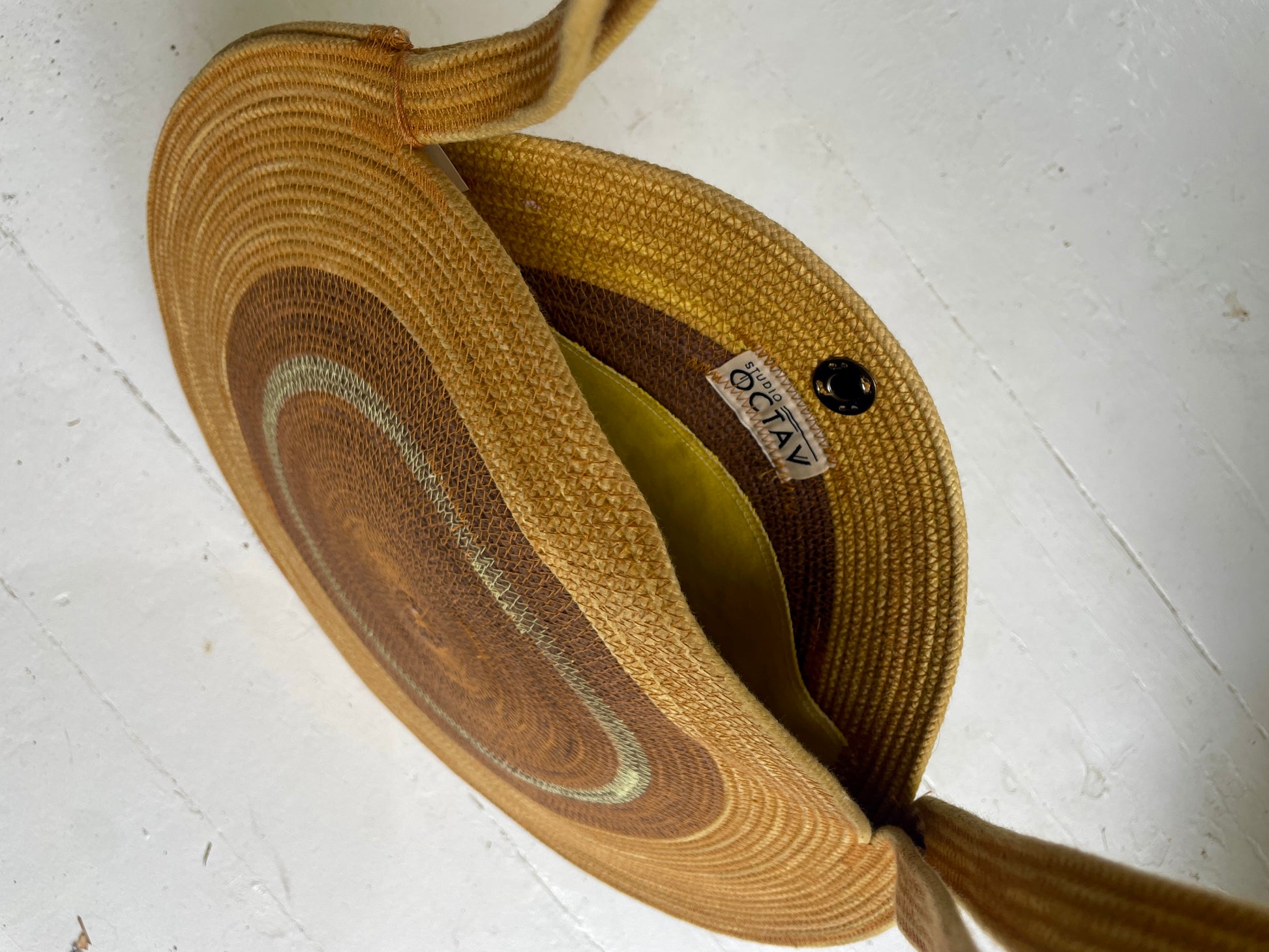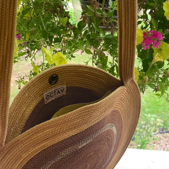 The CIRKEL TAS. A round purse destined to be noticed. It is the latest design in my ever evolving work in functional rope art.