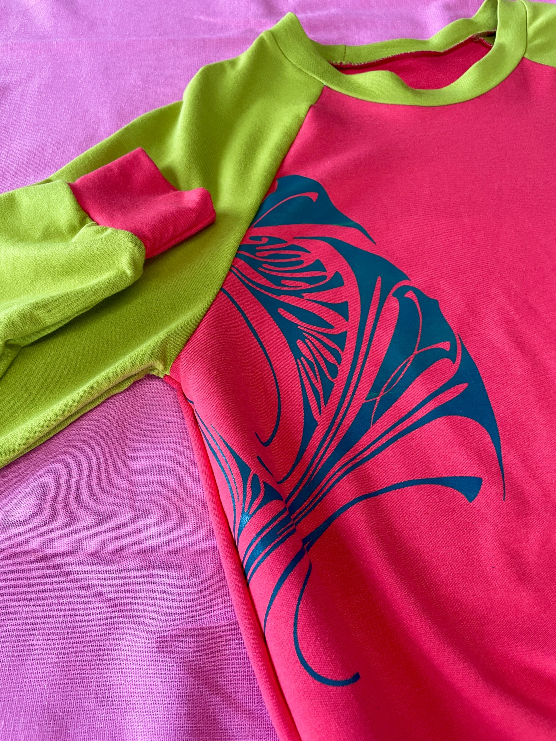 The classic Lounge Lakers unisex pullover sweater with raglan sleeve. A unique piece with art nouveau inspired silk screened artwork