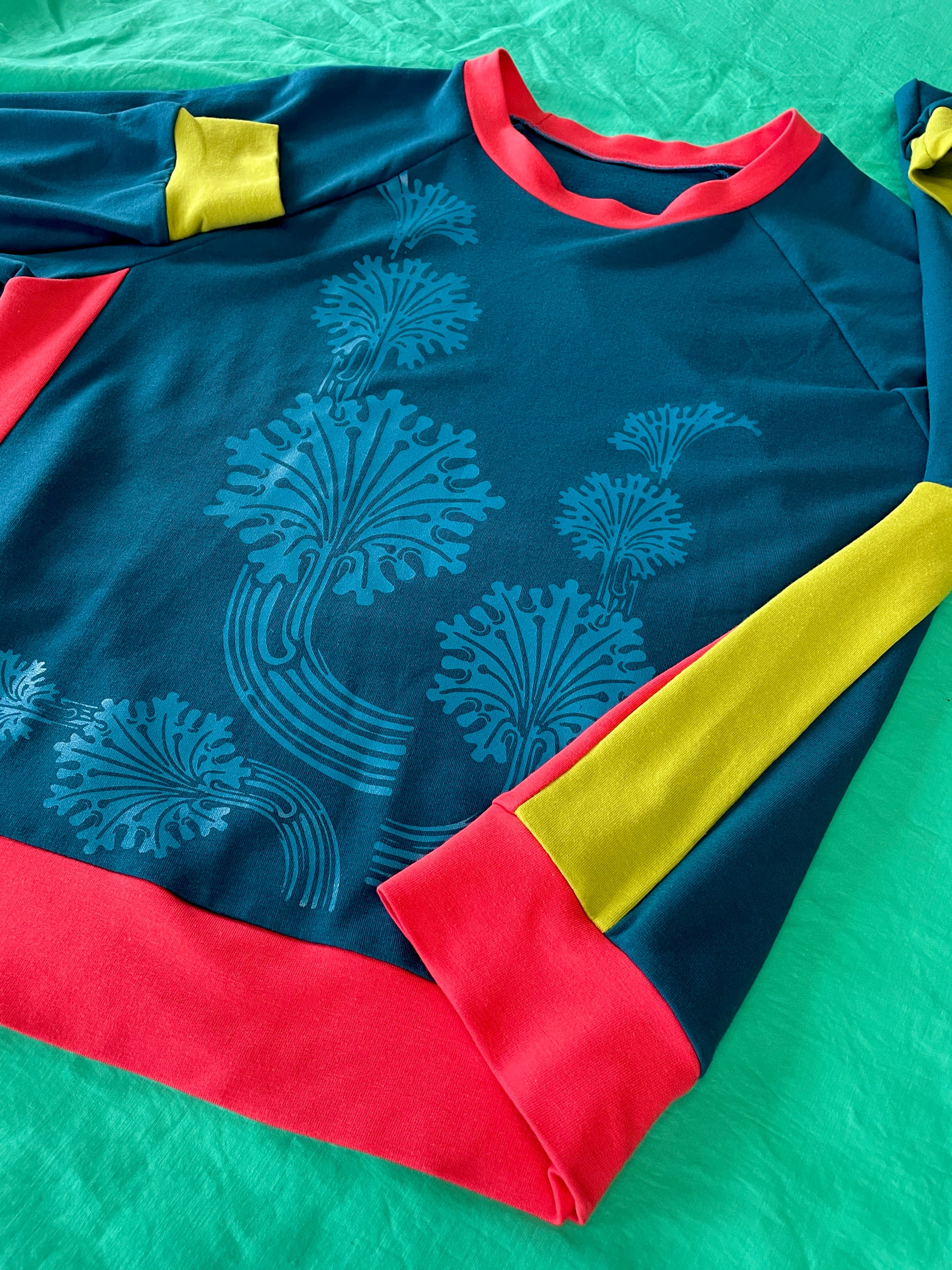 The classic Lounge Lakers unisex pullover sweater with raglan sleeve. A unique piece with floral silk screen.