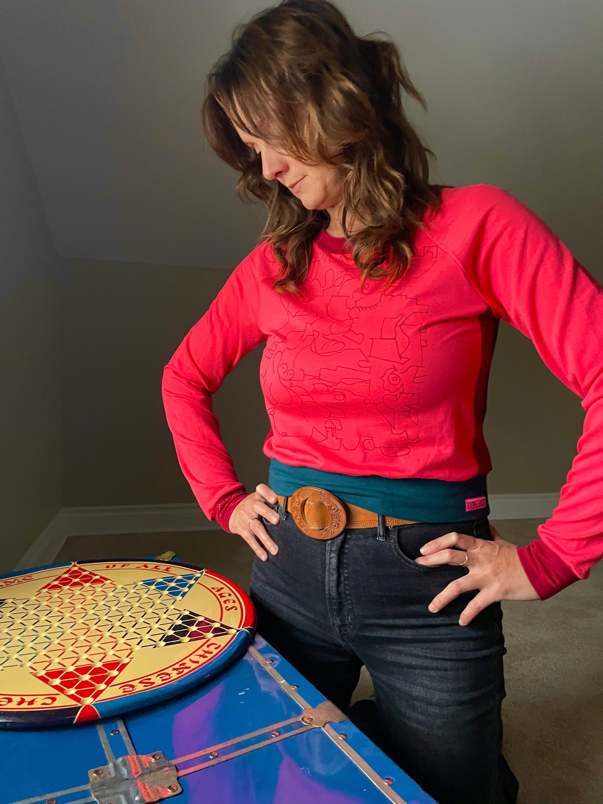The classic Lounge Lakers unisex pullover sweater. A unique piece with silk screened artwork by Sarah Epp. This cropped top sits at waist level and is made from a luxuriously soft bamboo/cotton French Terry.
