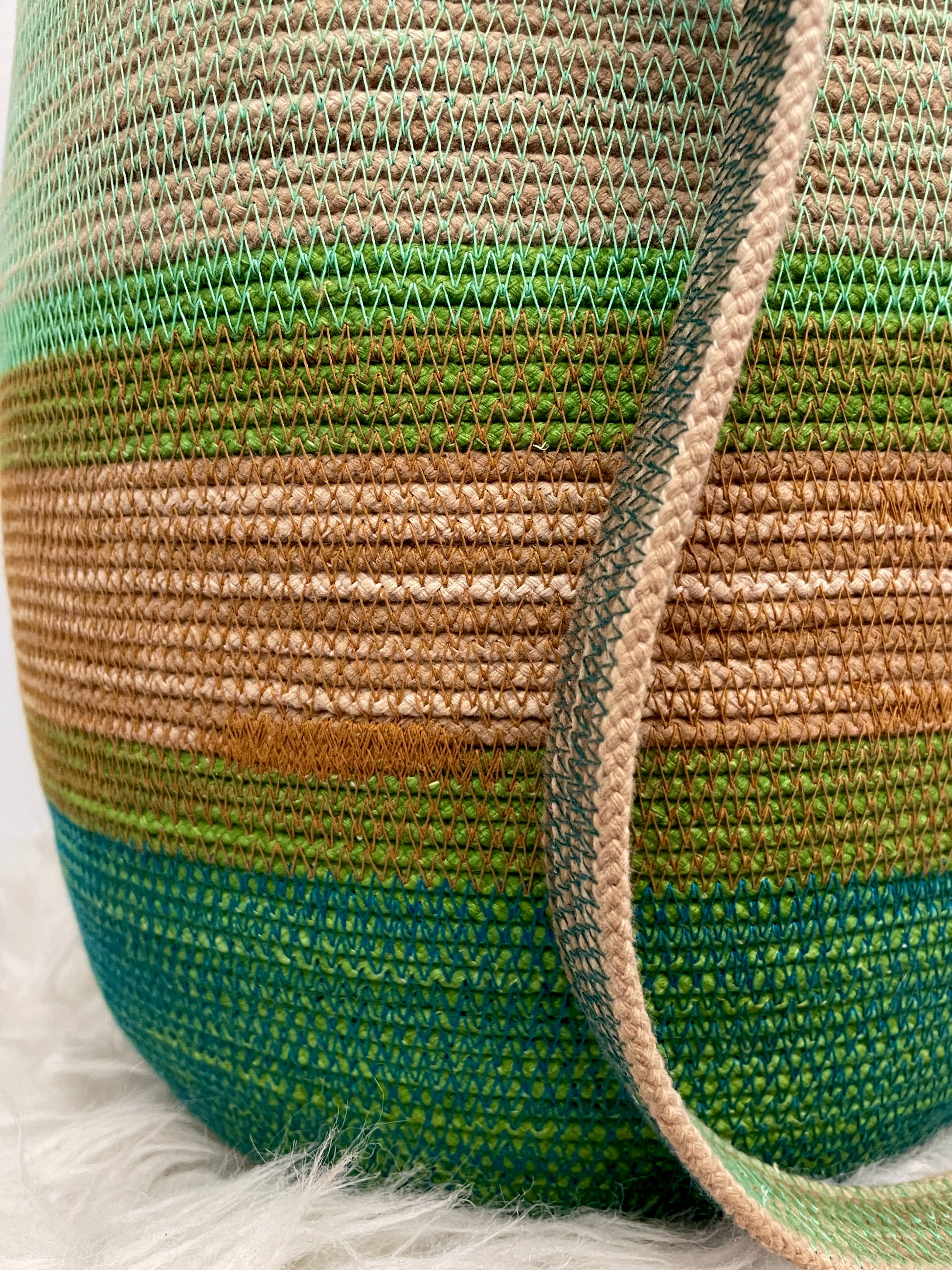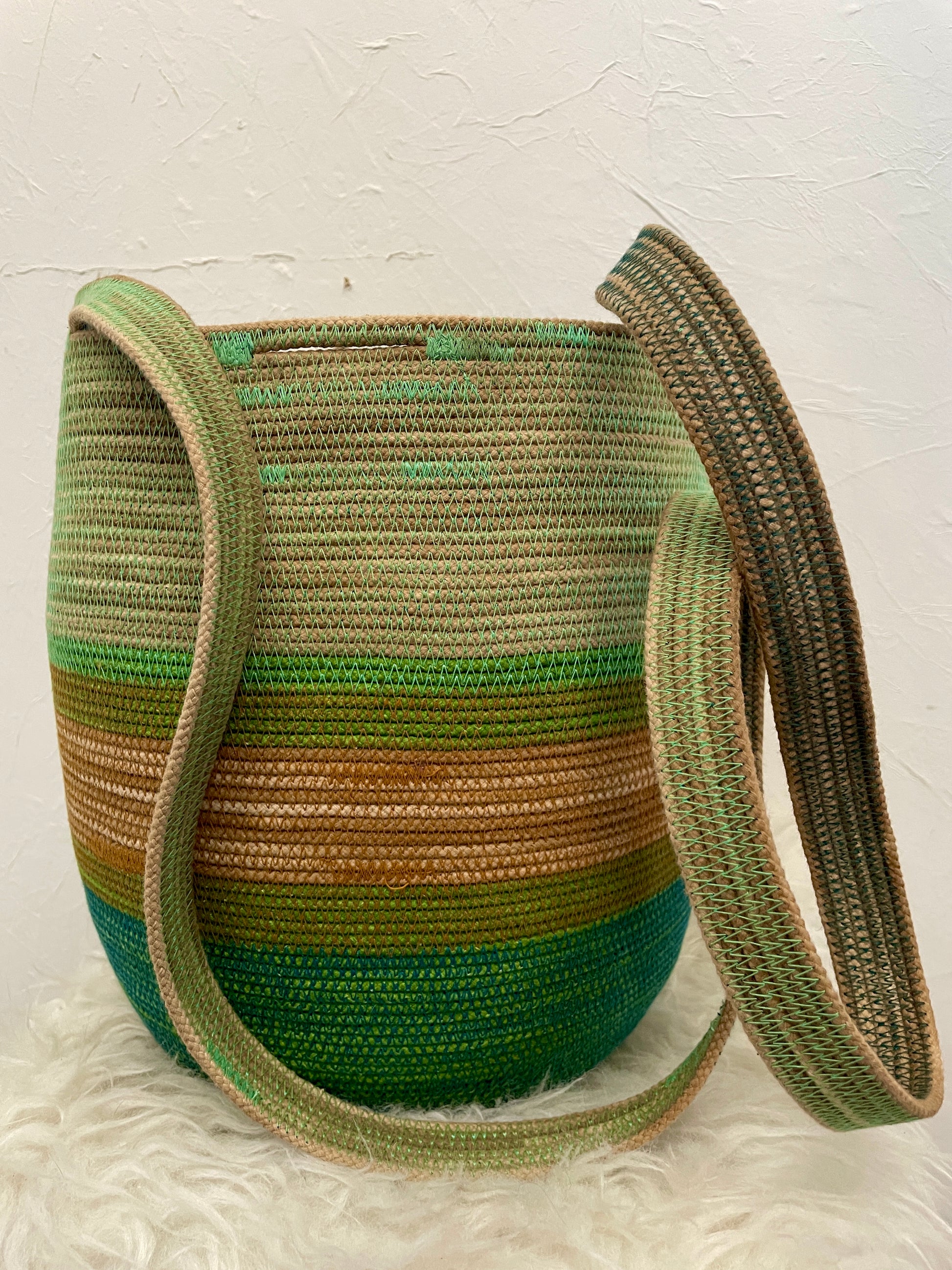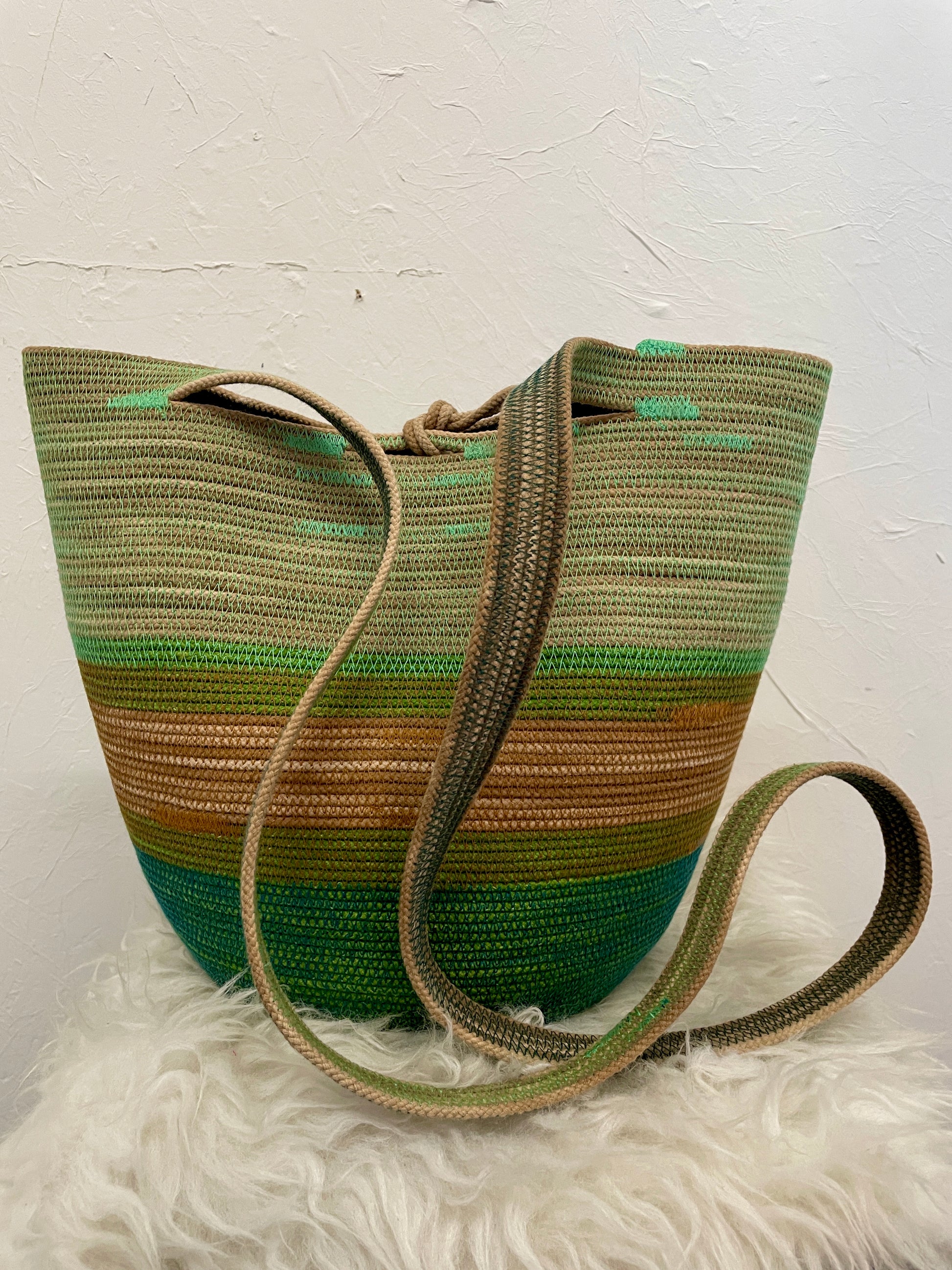 This design can be worn across the body, over the shoulder, carried as a regular basket or on your back like a backpack. Each basket is one-of-a-kind and will keep its shape with wear.