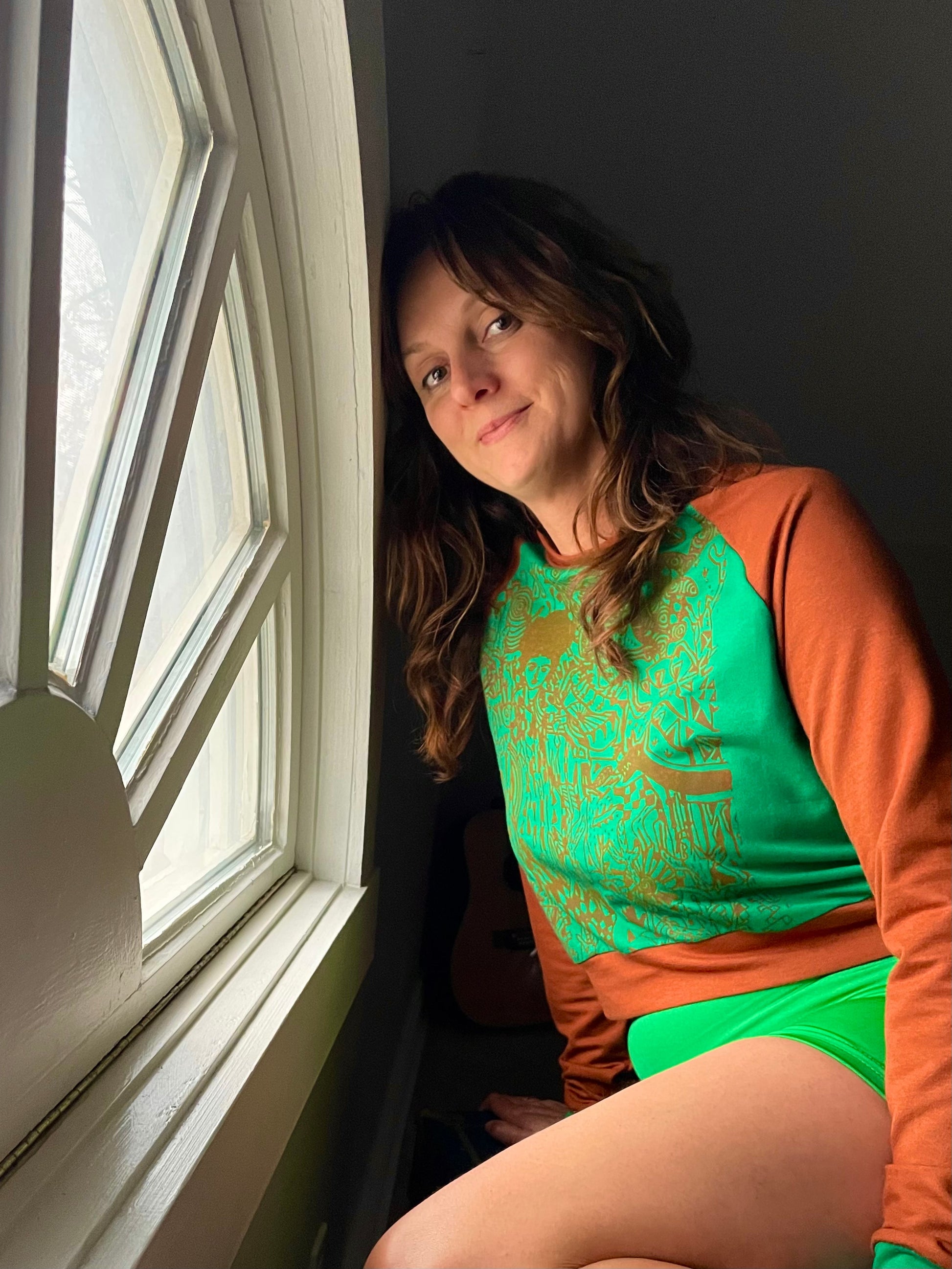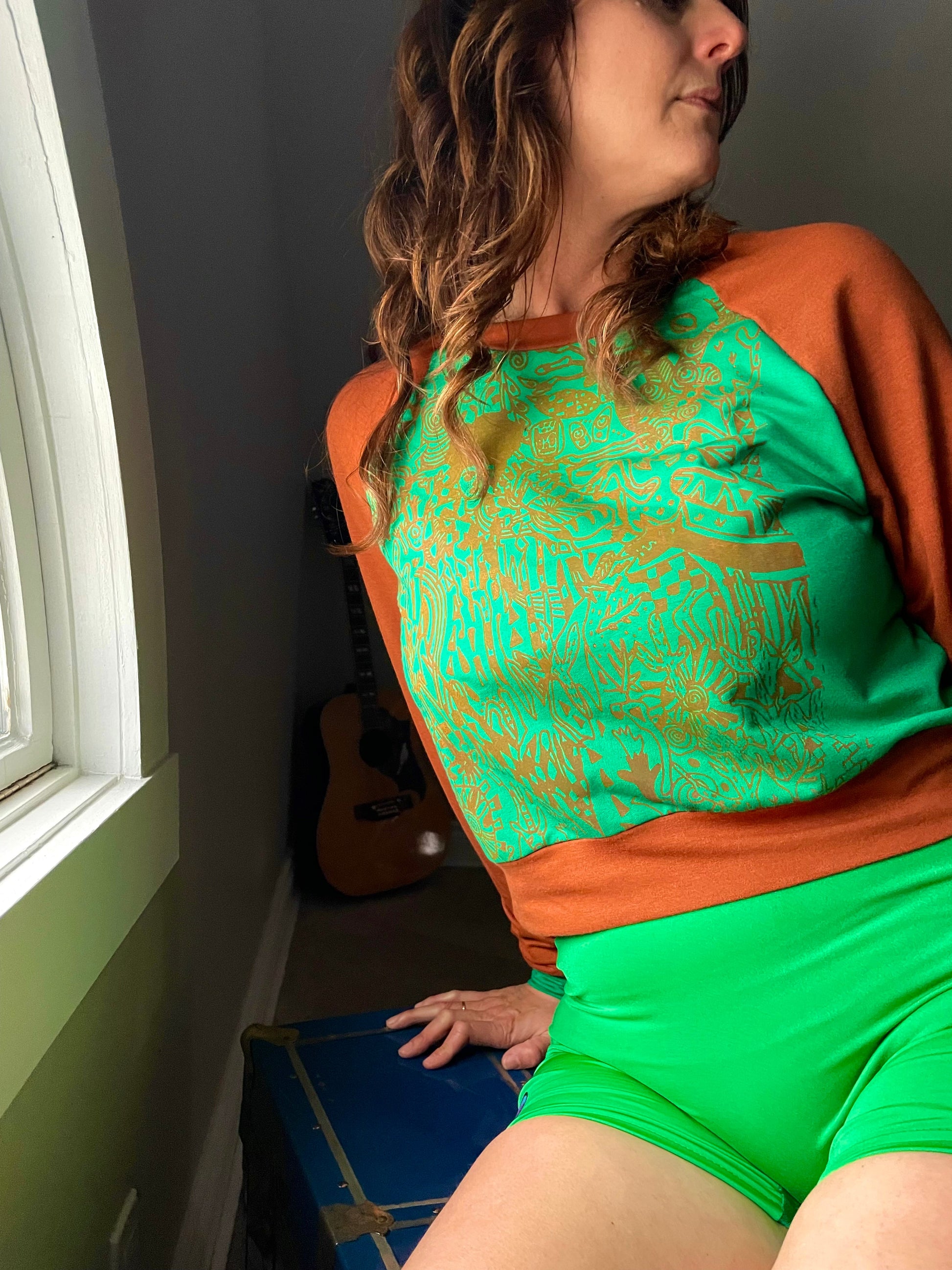 The classic Lounge Lakers unisex pullover sweater. A unique piece with silk screened artwork by Ten Yetman. This cropped top sits at waist level and is made from a luxuriously soft bamboo/cotton French Terry.