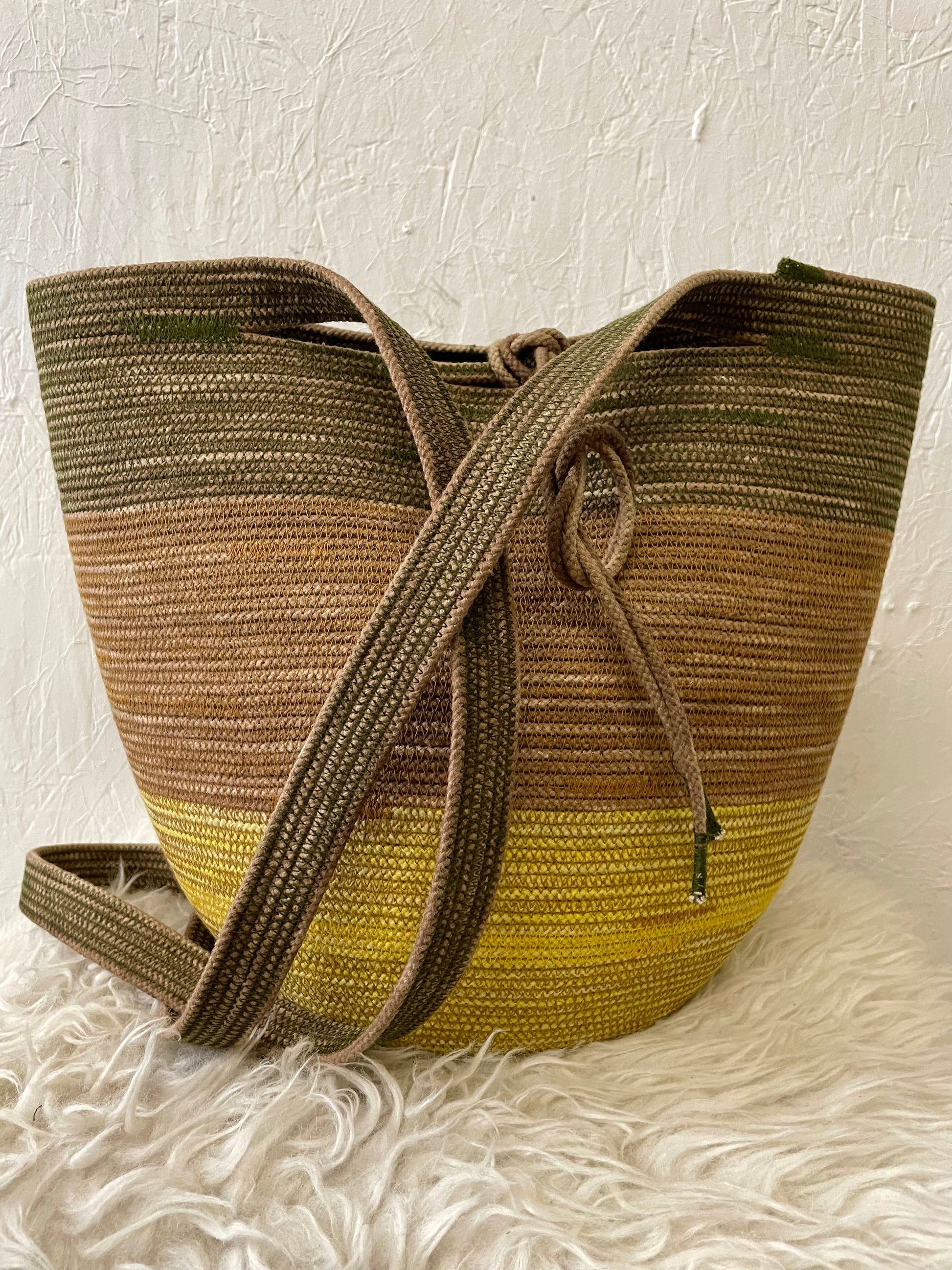 This design can be worn across the body, over the shoulder, carried as a regular basket or on your back like a backpack. Each basket is one-of-a-kind and will keep its shape with wear.