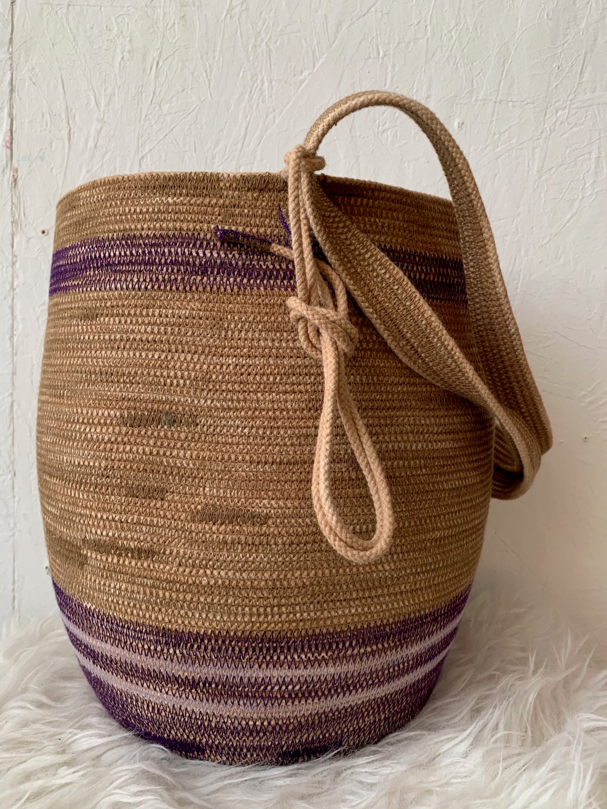Depending on how you tie down the main strap you can wear it across the body, over the shoulder, carried as a regular basket or on your back like a backpack. Each basket is one-of-a-kind and will keep its shape with wear.
