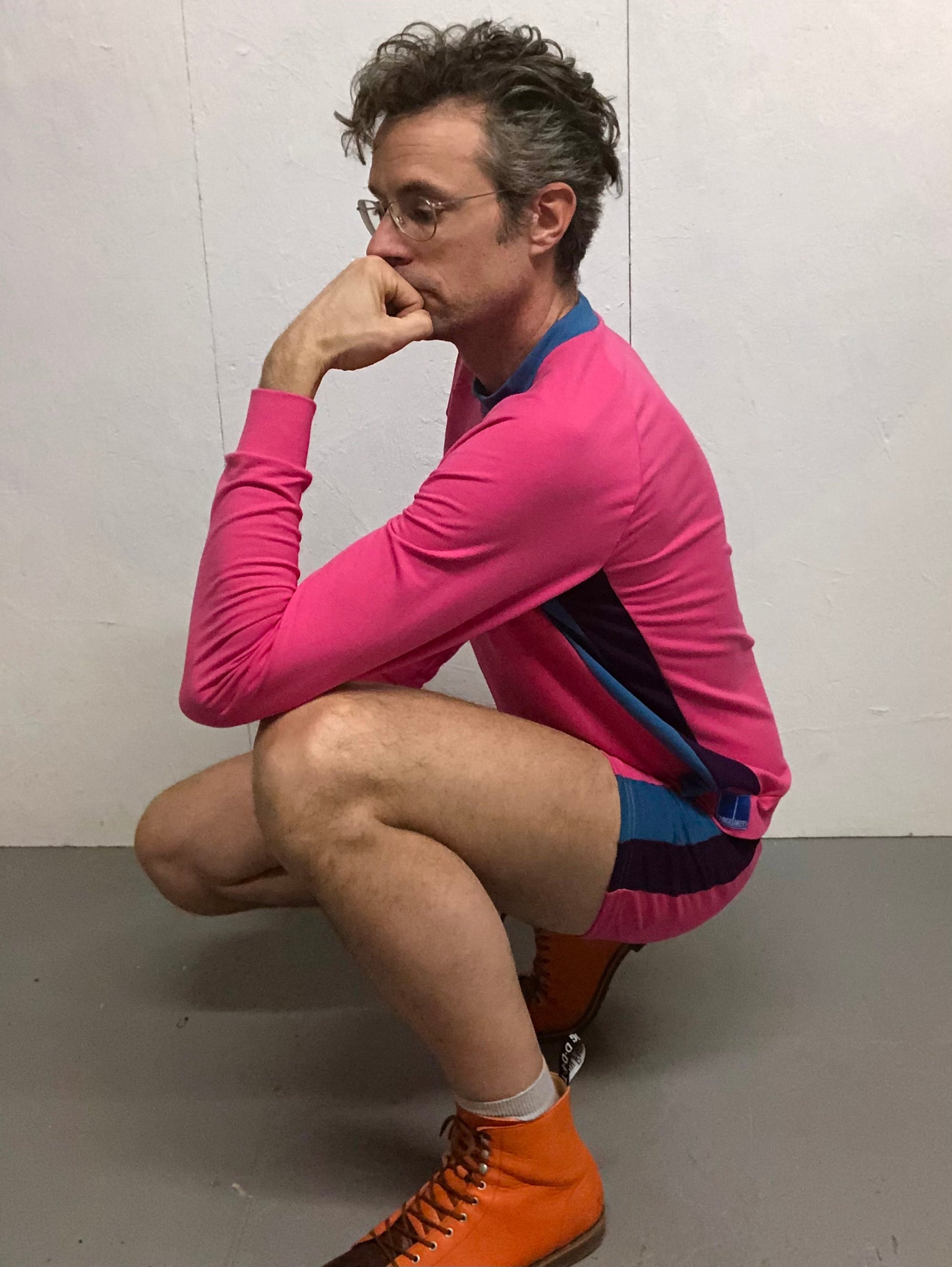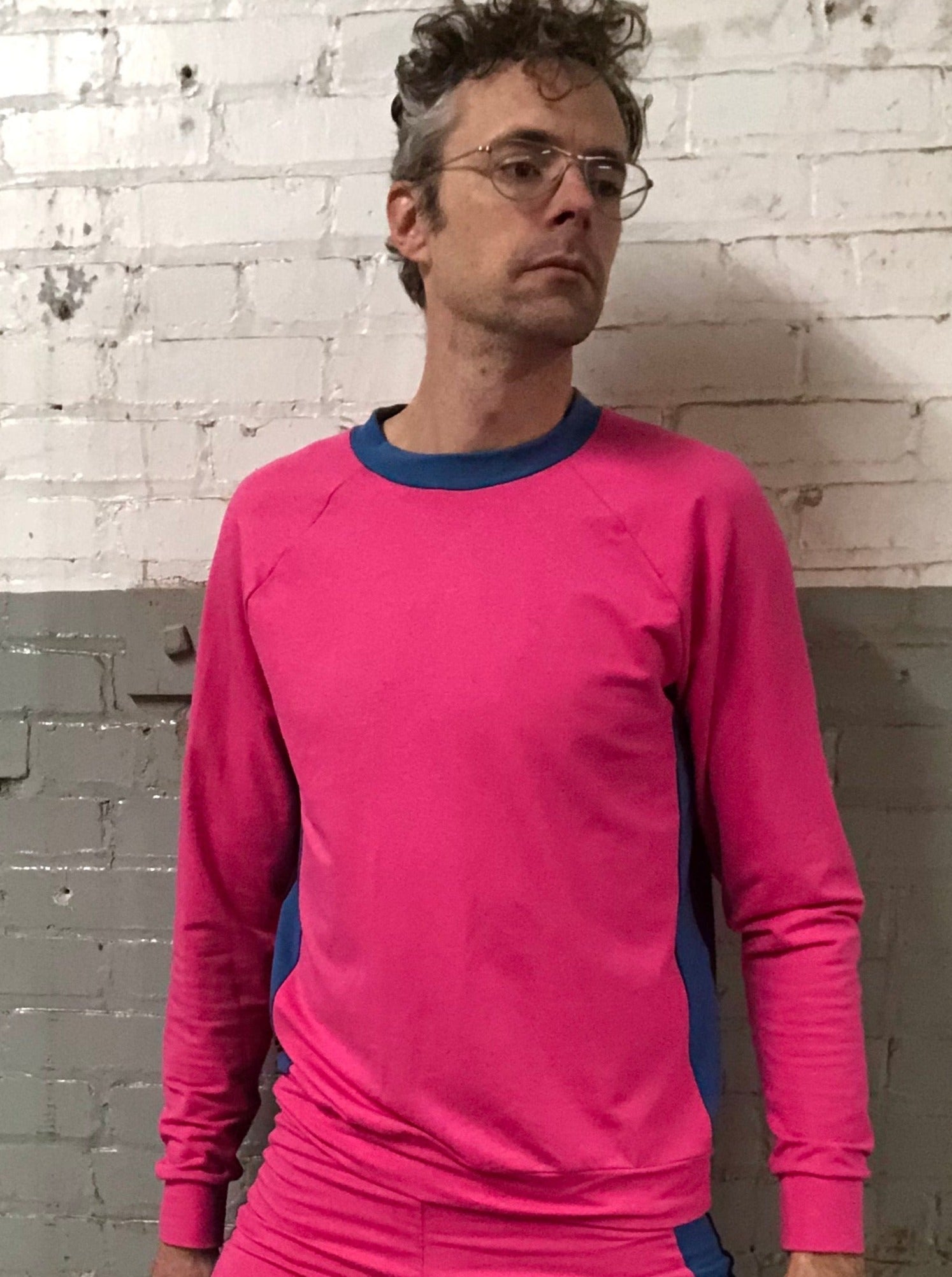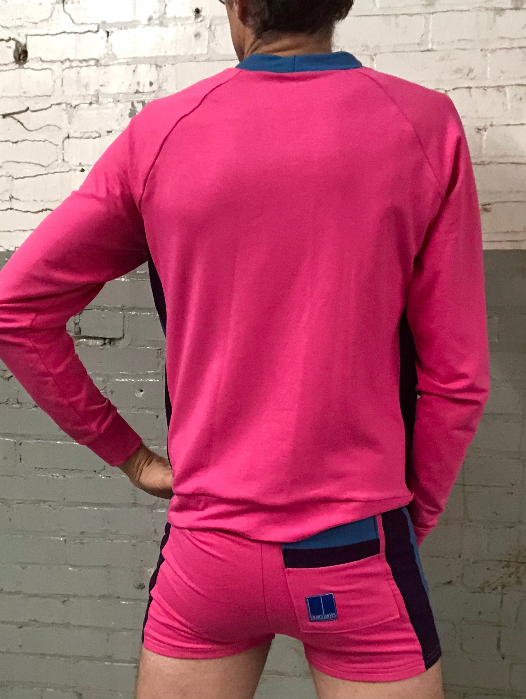 Originally commissioned by the New World Order as the uniform for our not too distant future, this colour combo has ironically become a popular choice for individuals not afraid to go outside. Out and about indeed. This pink with plum/sky blue combo encapsulates a sense of freedom and playfulness in the face of a threatening world.