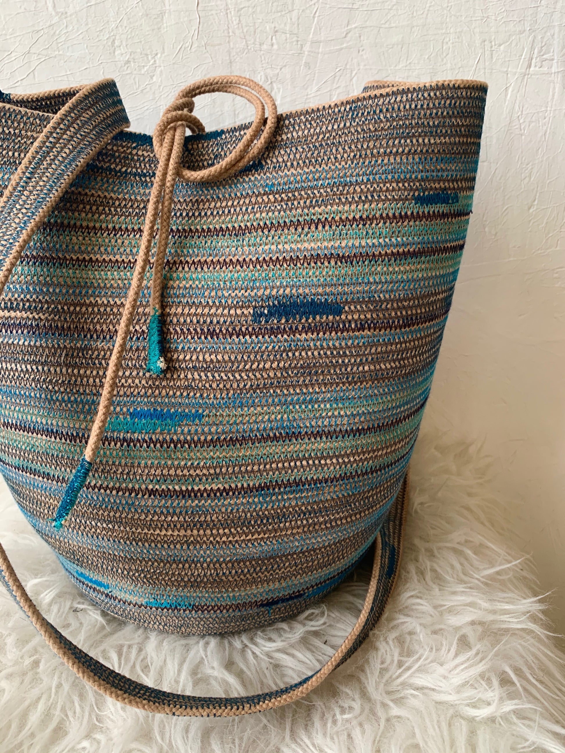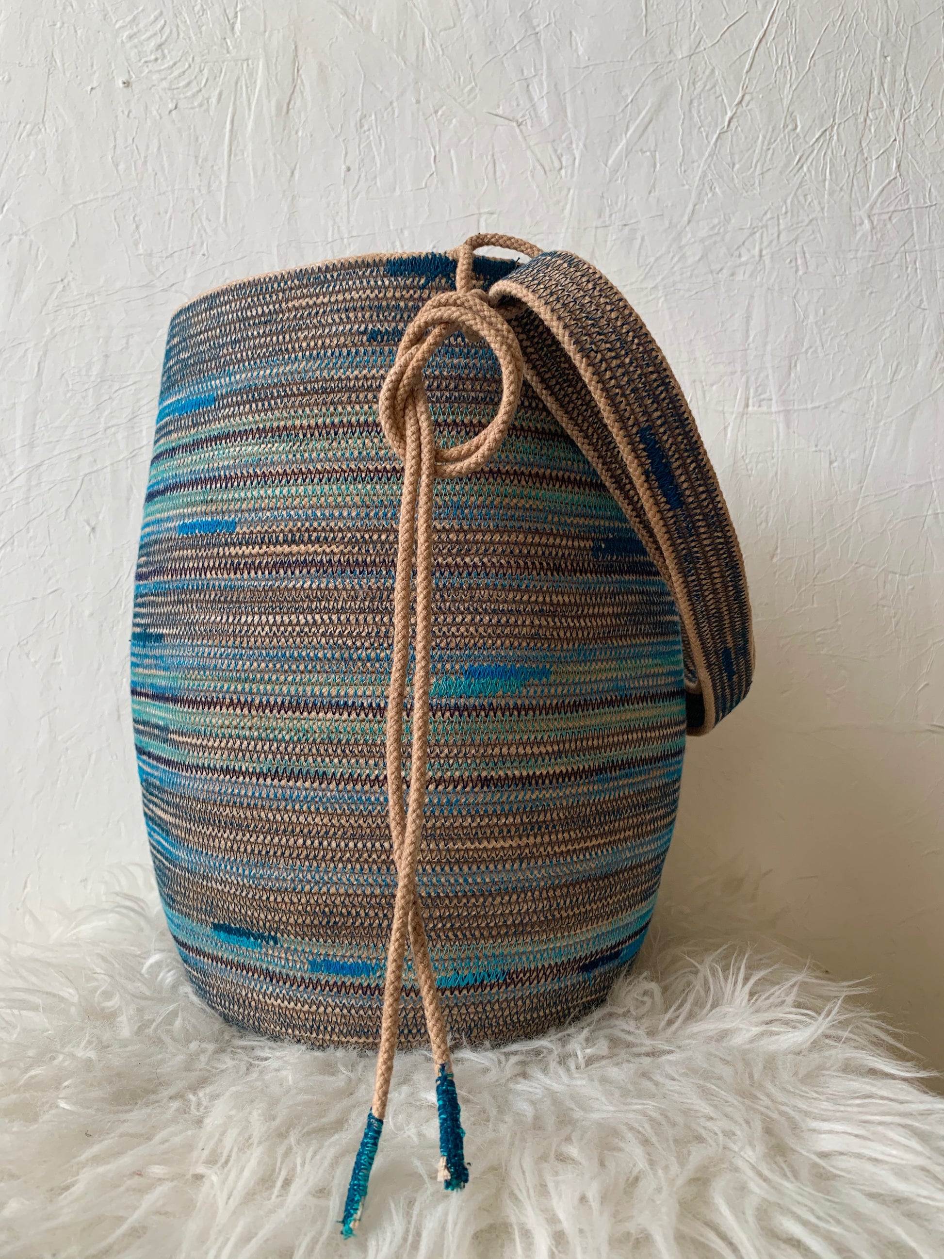 Depending on how you tie down the main strap you can wear it across the body, over the shoulder, carried as a regular basket or on your back like a backpack. Each basket is one-of-a-kind and will keep its shape with wear.
